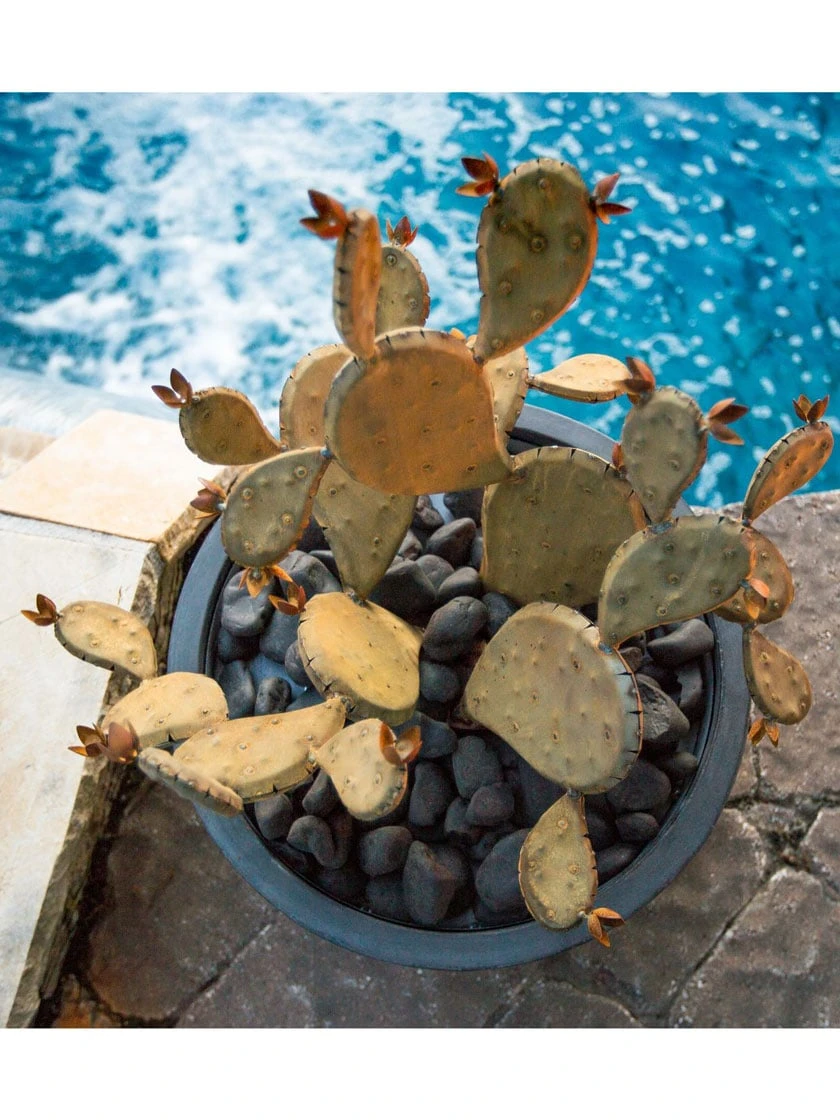 Desert Steel Prickly Pear Cactus Sculpture, Redondo