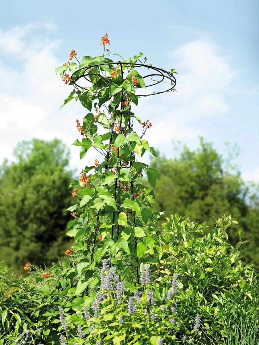 Clematis, morning glories and other vines grow up and over the umbrella-shaped top of this sturdy trellis, and then drape gracefully for a stunning display. The trellis’s clean lines and unique shape let plants take center stage. We recommend securing with Extra-Tall Earth Staples, sold separately.