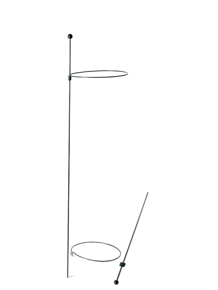 Designed to last a lifetime, these superior plant rings are simple, attractive, and ultra versatile. The unique system allows rings to slide easily up the stake to keep pace with your plant as it grows — and yet won’t slip down under bloom weight. Galvanized steel has a protective vinyl coat that’s gentle on stems. And a glossy finial atop the stake keeps human eyes safe from inadvertent pokes.